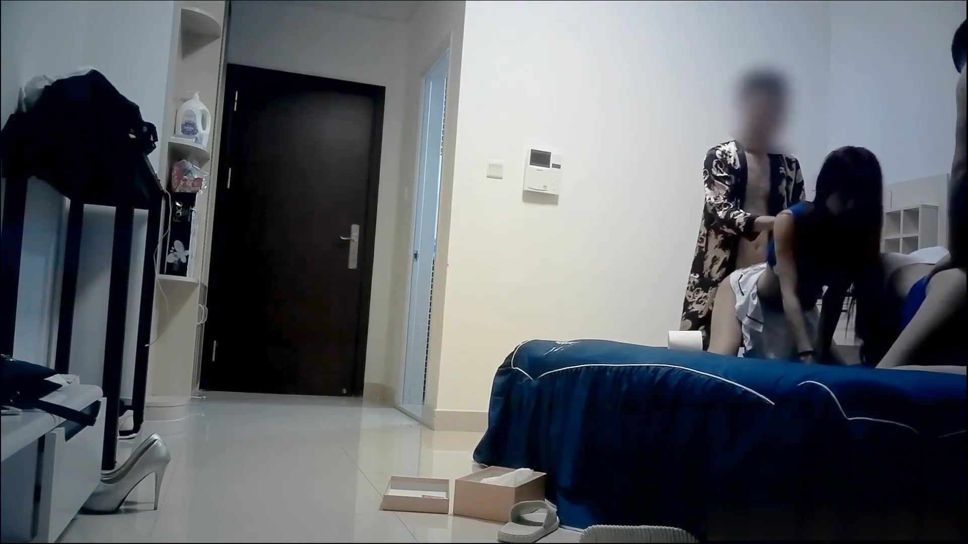 特色蓝房中年大叔与情妇偷情啪啪啪奶子还挺大的大叔功夫好时快时慢的干搞的情妇欲仙欲死奶子乱抖射阴毛上