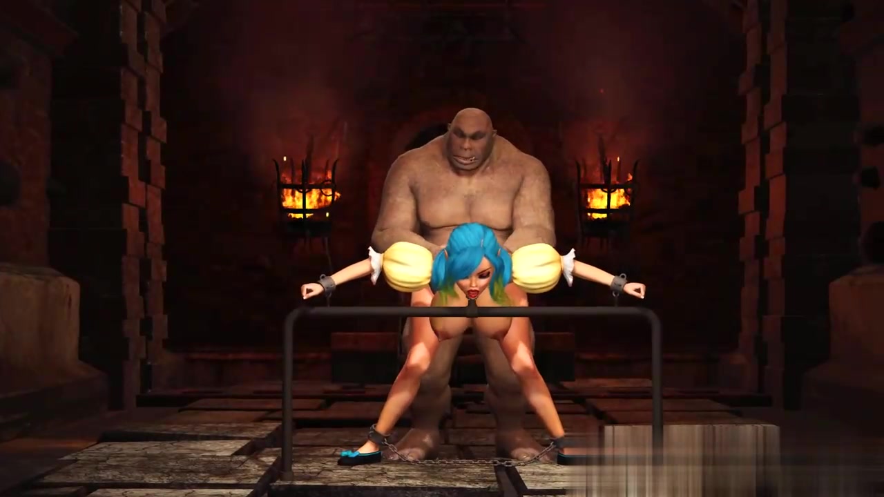 美丽的雌性精灵被地牢里的大怪物搞得屁滚尿流。