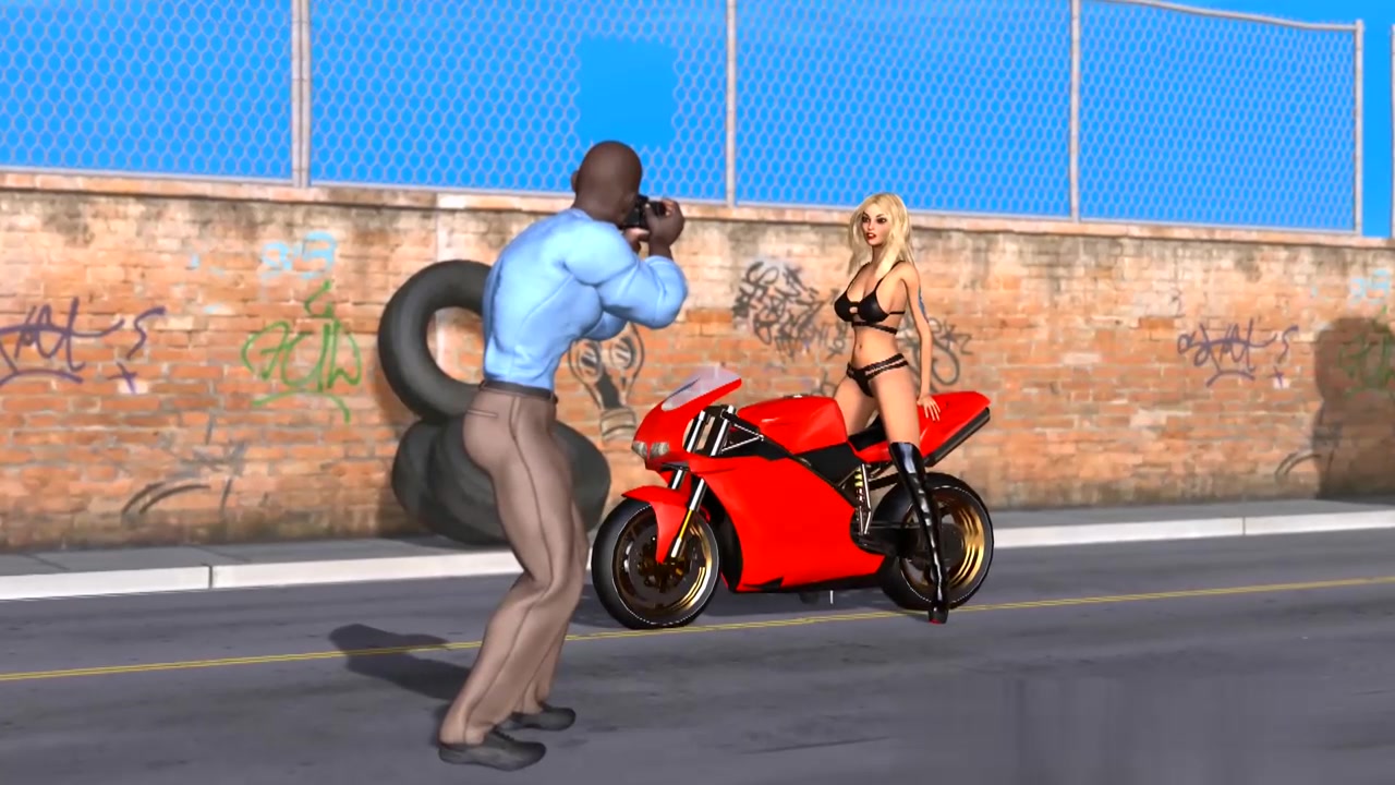 年轻金发女郎由黑人摄影师户外拍摄抽插打桩。