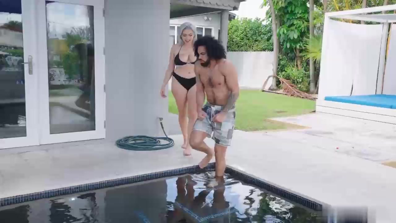 女孩比基尼和高大男友跪下双手撸管吃肉棒啪啪