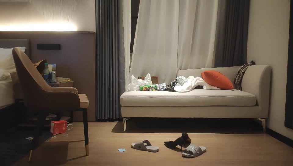 风骚轻熟女,迫不及待揉捏小哥JB,喜笑颜开掰开双腿,高跟鞋开档裤,扶沙发后入猛操。