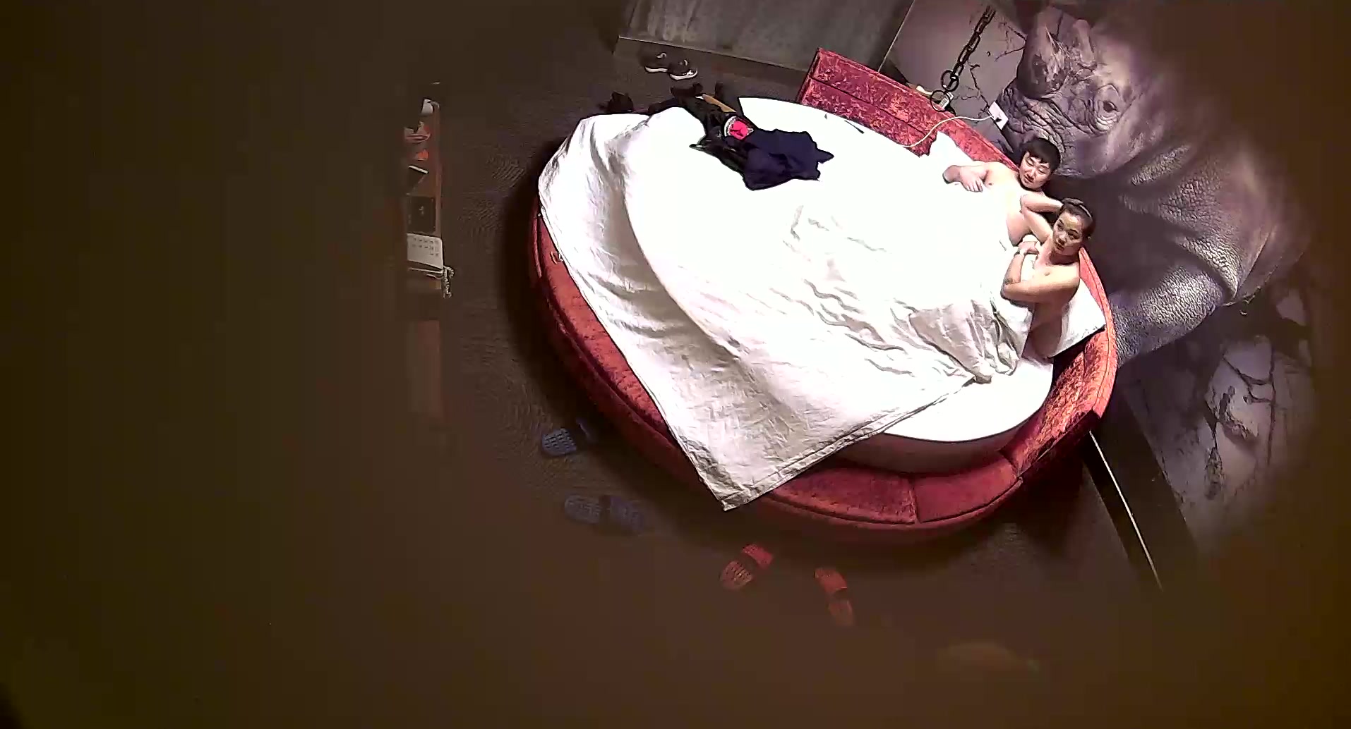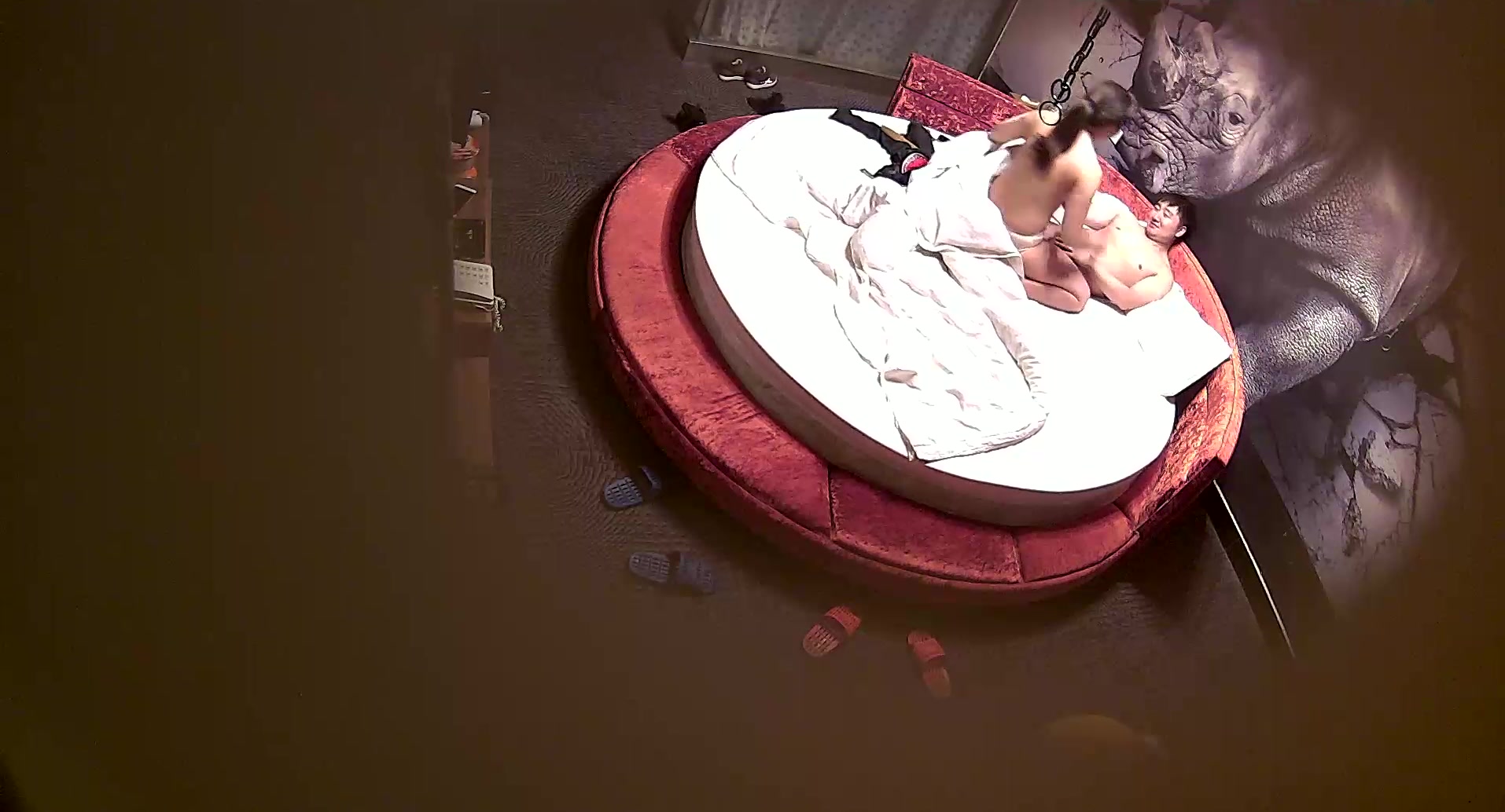 精品酒店大圆床偷拍中年事业男和少妇开房偷情搞完抽口烟