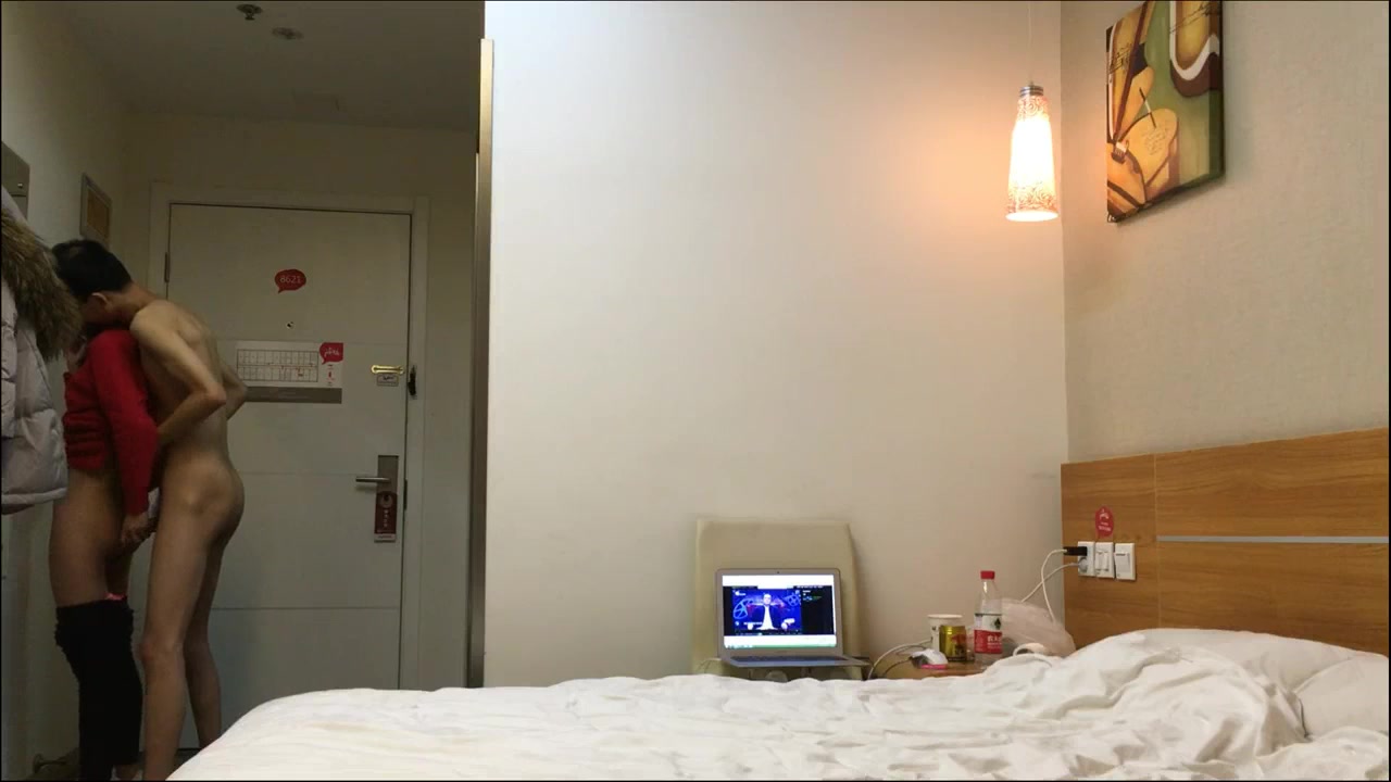 短发面罩苗条妹和小男友居家啪啪 红色丁字裤黑色网袜