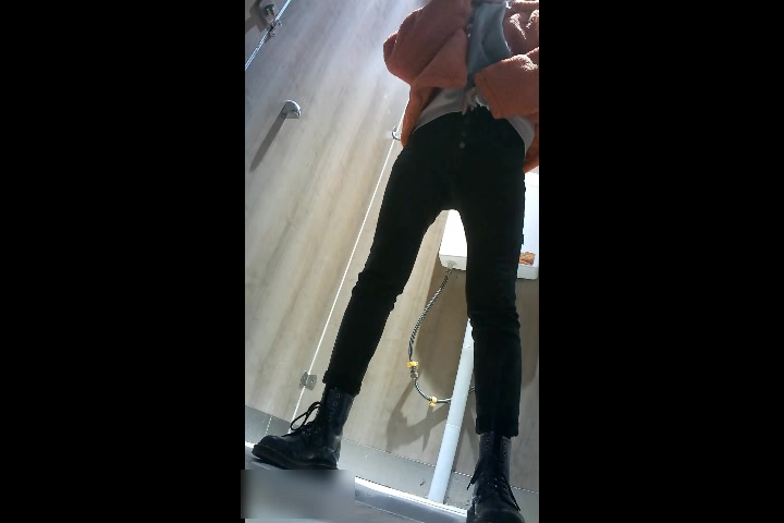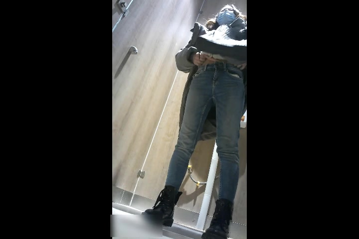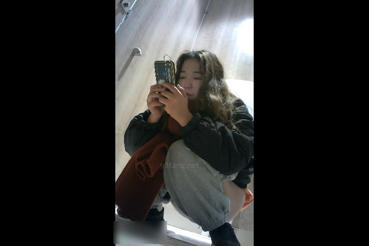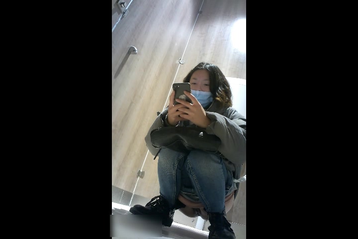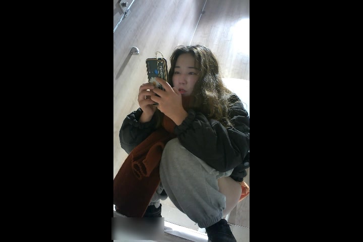 商场女厕全景偷拍手持红色手机气质美少妇