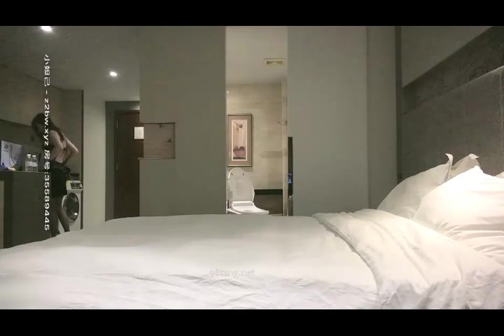 酒店黑色亮片吊带裙肉丝高跟受不了了